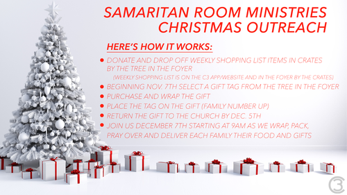If you have more question or would like to know more about the Christmas Outreach or the Samaritan Room Ministries we'd love to hear from you. Fill out the form below and someone will be in touch with you soon.